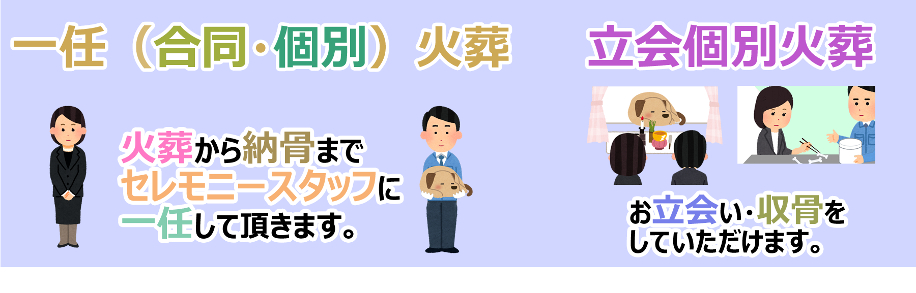 「一任合同火葬・一任個別火葬」プラン 「立会個別火葬」プラン
