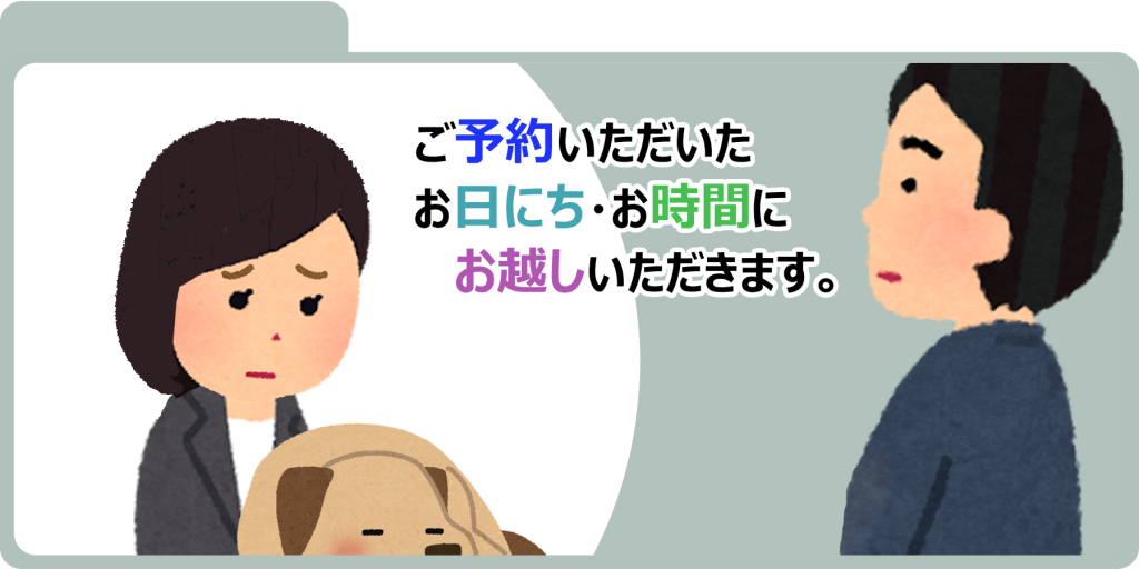 ご予約いただいたお日にちお時間にお越しいただきます。